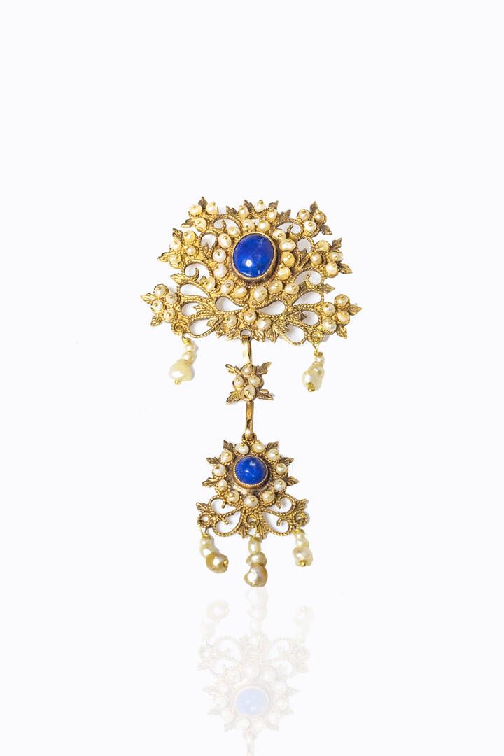 in oro giallo, in stile borbonico, con perline e lapislazzuli cabochon