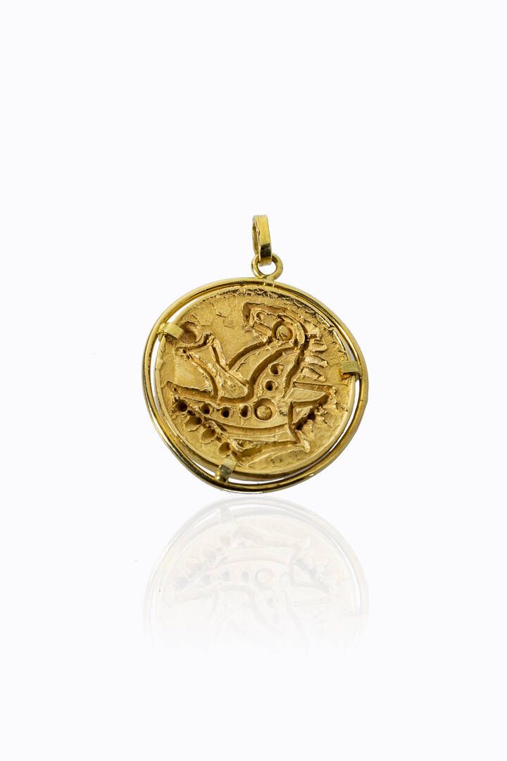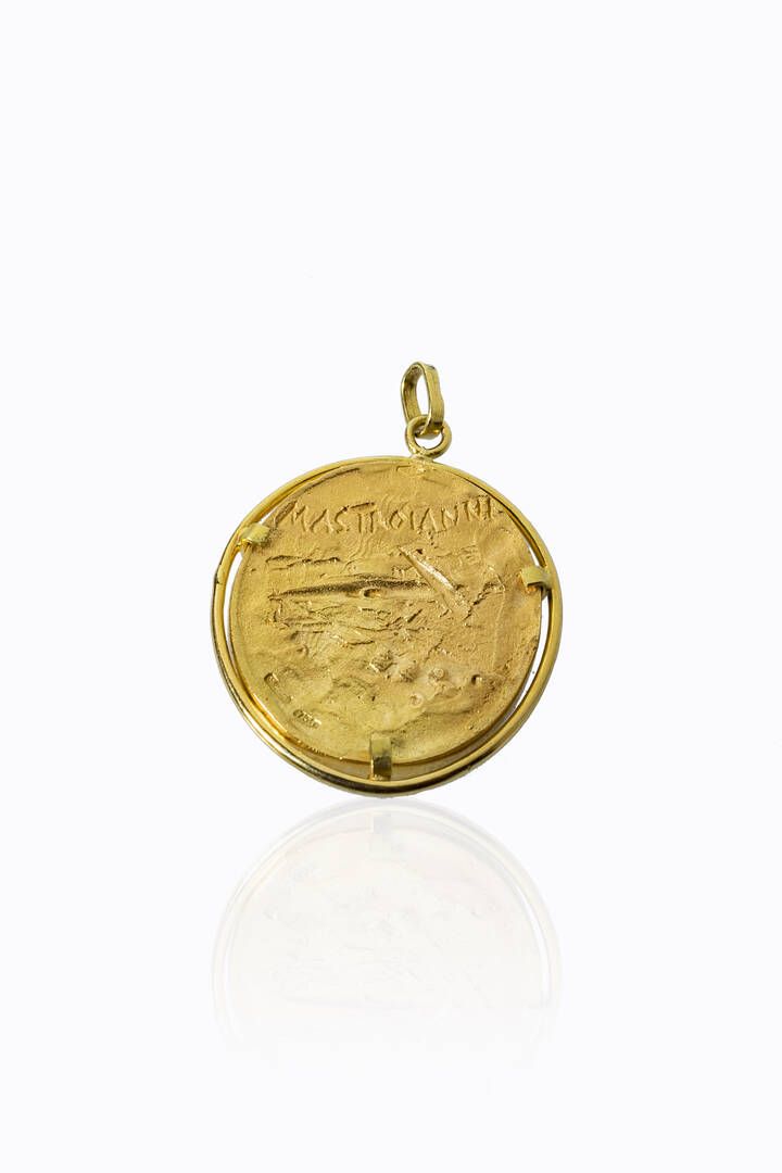 Ciondolo in oro giallo, firmato 'Mastroianni', raffigurante un animale mitologico sul fronte e sul retro una composizione astratta. Esemplare unico