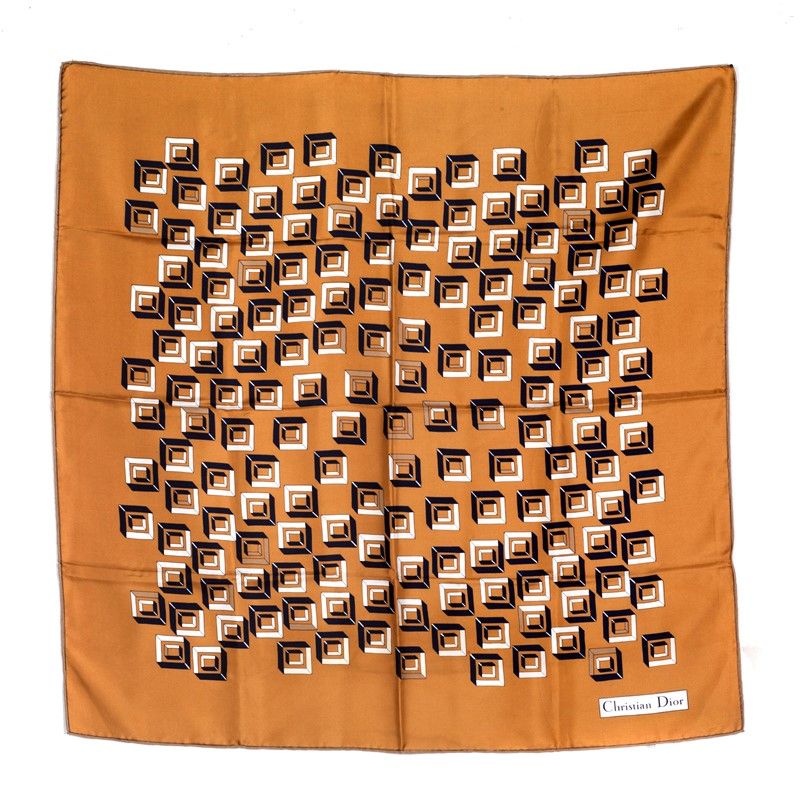 In seta 100% color castagna chiaro con disegni geometrici in nero e bianco effetto labirinto.