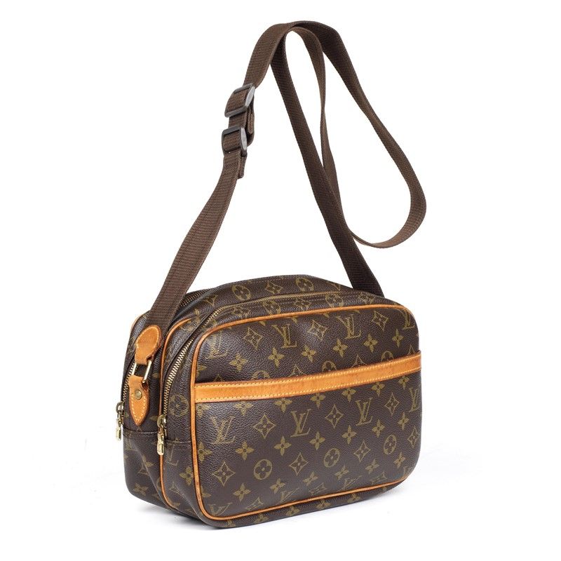 LOUIS VUITTON TRACOLLA REPORTER Tracolla in tela Monogram indossabile anche come messenger per un facile utilizzo quotidiano, con corpo centrale chiuso da zip in ottone con tiralampo con logo e una tasca frontale aperta profilata in vacchetta; tracolla in nastro marrone regolabile. Dim. cm 26x18x12.