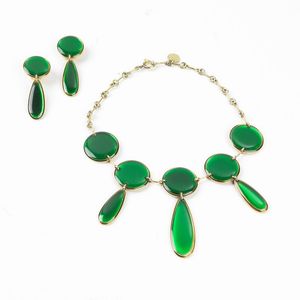 ROBERTA DI CAMERINO PARURE In metallo dorato, con forme che hanno caratterizzato le collezioni di bigiotteria [..]