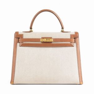 HERMES KELLY SELLIER 35 Questa particolare combinazione di materiali, corpo in tela écru, bordi e interno [..]
