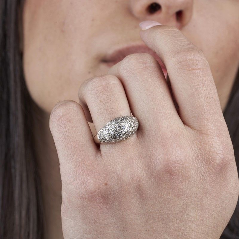 DIAMOND DOME RING IN 18KT WHITE GOLD