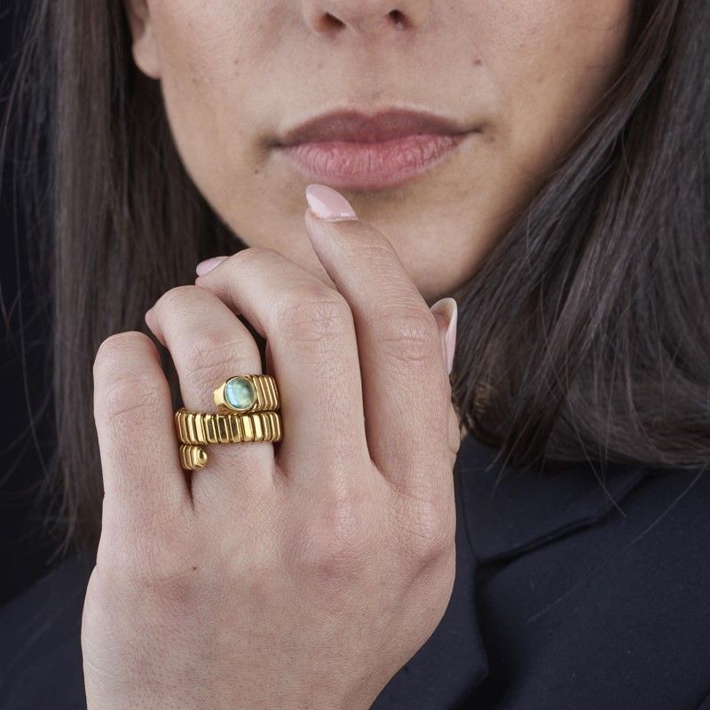 EMERALD TUBOGAS RING IN 18KT YELLOW GOLD