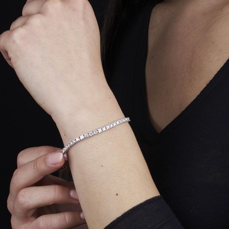in oro bianco 14kt, impreziosito da una fila di diamanti taglio brillante per ct 5 circa, punzone 14kt, lungh. cm 19,5, gr. 11