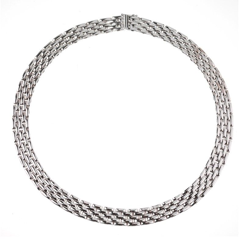 in oro bianco 18kt, realizzata a fascia morbida e composta da una serie di maglie concatenate, punzoni 750 e del fabbricante, lungh. cm 40, gr. 84