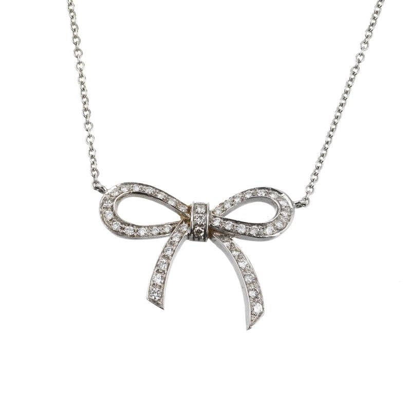 in oro bianco 18kt, con elemento centrale realizzato a forma di fiocco impreziosito da diamanti taglio brillante per ct 0.90 circa, punzone 750, lungh. cm 37, gr. 7