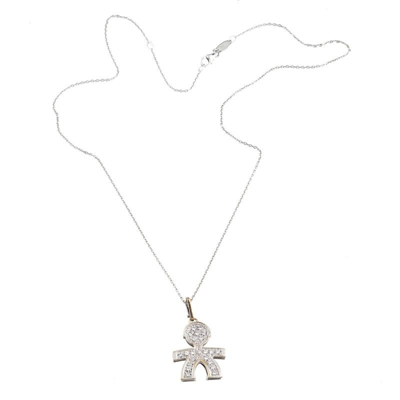 COLLANA CON FIGURINA UMANA in oro bianco 18kt, composta da catena e pendente impreziosito da diamanti taglio brillante per ct 0.20 circa, firmata "Le Bebé", punzoni 750 e del fabbricante, lungh. cm 39, gr. 5