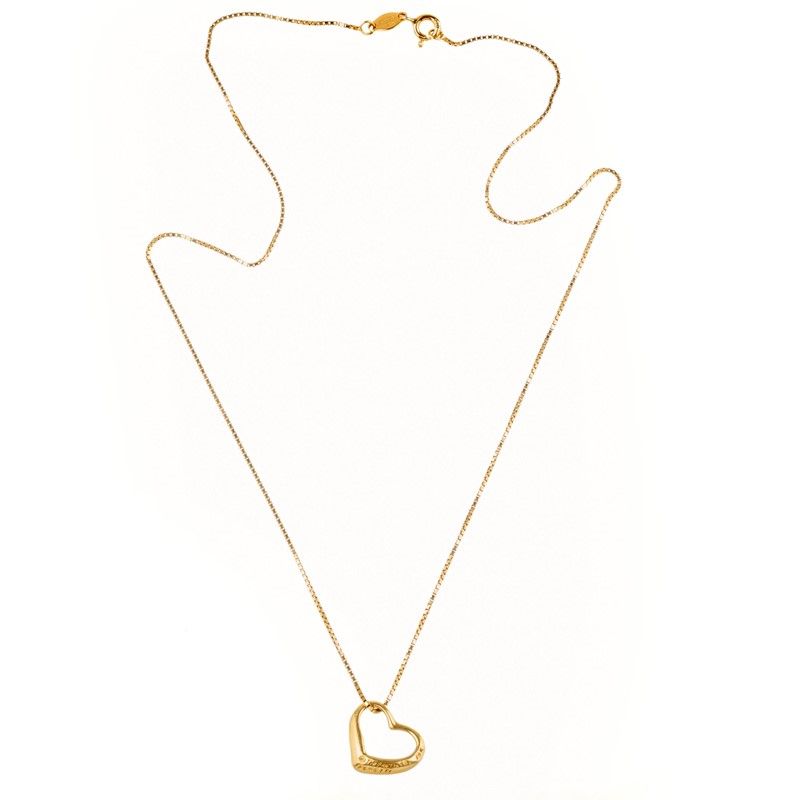 ELSA PERETTI PER TIFFANY & CO. PENDENTE A FORMA DI CUORE in oro giallo 18kt, realizzato a forma di cuore, firmato "Peretti" e "Tiffany & Co.", corredato di catena in oro giallo 18kt, punzoni 18kt, 750 e del fabbricante, lungh. cm 40,5, gr. 4
