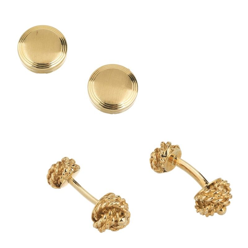 KNOT CUFFLINKS AND BUTTON COVERS IN 18KT YELLOW GOLD