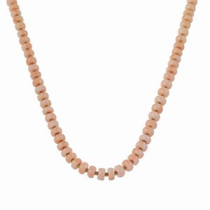 COLLANA IN CORALLO ROSA fermatura e distanziali in oro giallo e bianco 18kt, composta da una serie di dischi in [..]