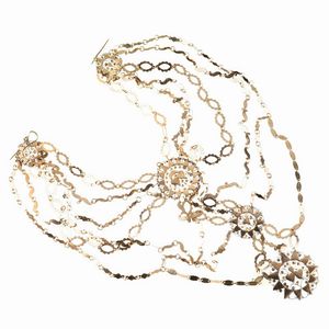 COLLANA DI PERLE CON ANELLO A CUPOLA composta da cinque fili di perle di fiume, fermatura in oro giallo 18kt [..]