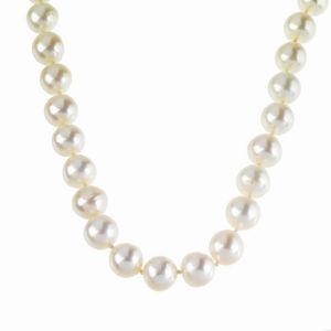 COLLANA DI PERLE composta da un filo di perle di mm 9 circa, fermatura in oro bianco 18kt con al centro uno zaffiro [..]