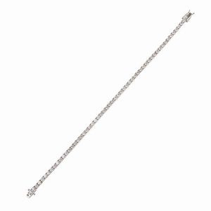 BRACCIALE TENNIS in oro bianco 14kt, impreziosito da una fila di diamanti taglio brillante per ct 5 circa, punzone [..]