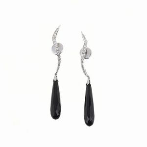 PAIO DI LUNGHI ORECCHINI A GOCCIA in oro bianco 14kt, composti da elementi ondulati impreziositi da diamanti taglio [..]