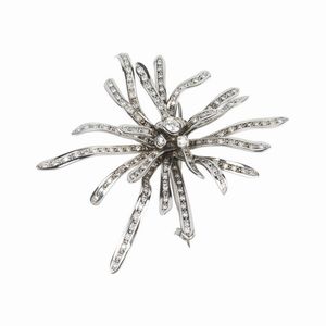 SPILLA FLOREALE CON DIAMANTI in oro bianco 18kt, impreziosita da diamanti taglio brillante per ct 2.20 circa, [..]