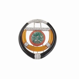 SPILLA CON ONICE E DIAMANTI in oro bianco 18kt, impreziosita da parti in onice e diamanti taglio rotondo per ct [..]