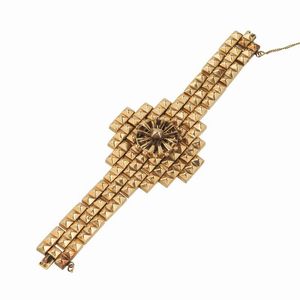 BRACCIALE AD AMPIA FASCIA in oro rosa 18kt, composto da una serie concatenata di maglie piramidali con al centro [..]