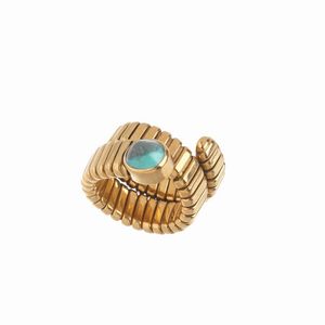 ANELLO TUBOGAS CON SMERALDO in oro giallo 18kt, impreziosito da uno smeraldo taglio cabochon di ct 1.50 circa, [..]
