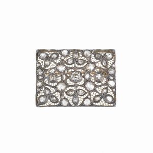 SPILLA CON DIAMANTI in oro e argento, traforata e lavorata a nido d'ape, raffigurante un motivo a tralci e impreziosita [..]