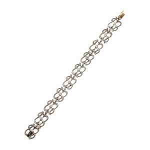 BRACCIALE CON DIAMANTI in oro e argento, composto da una serie di maglie a nastri intrecciati, impreziosito da [..]