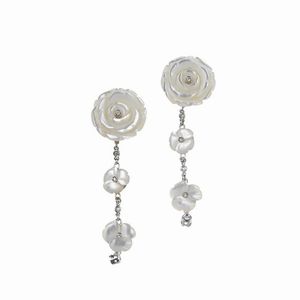 PAIO DI ORECCHINI PENDENTI CON ROSE IN MADREPERLA in oro bianco 18kt, ciascuno composto da tre rose in madreperla [..]