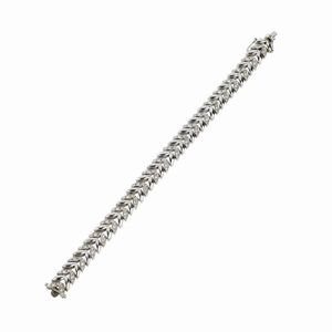 BRACCIALE A SPIGA CON DIAMANTI in oro bianco 18kt, composto da una serie continua di foglie disposte a coppia, [..]