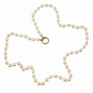 LUNGA COLLANA DI PERLE fermatura in oro giallo 18kt a forma di disco, impreziosita da diamanti taglio huit huit [..]