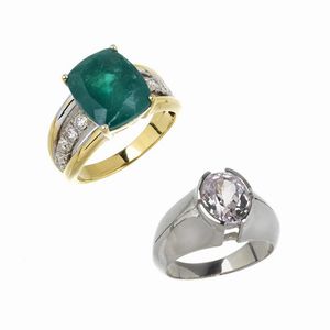 DUE ANELLI CON PIETRE SEMIPREZIOSE di cui uno in argento, impreziosito da una kunzite taglio ovale, punzoni 925 [..]