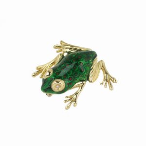 SPILLA A FORMA DI RANA in oro giallo 18kt, decorata in smalto e impreziosita da due diamanti taglio brillante, [..]