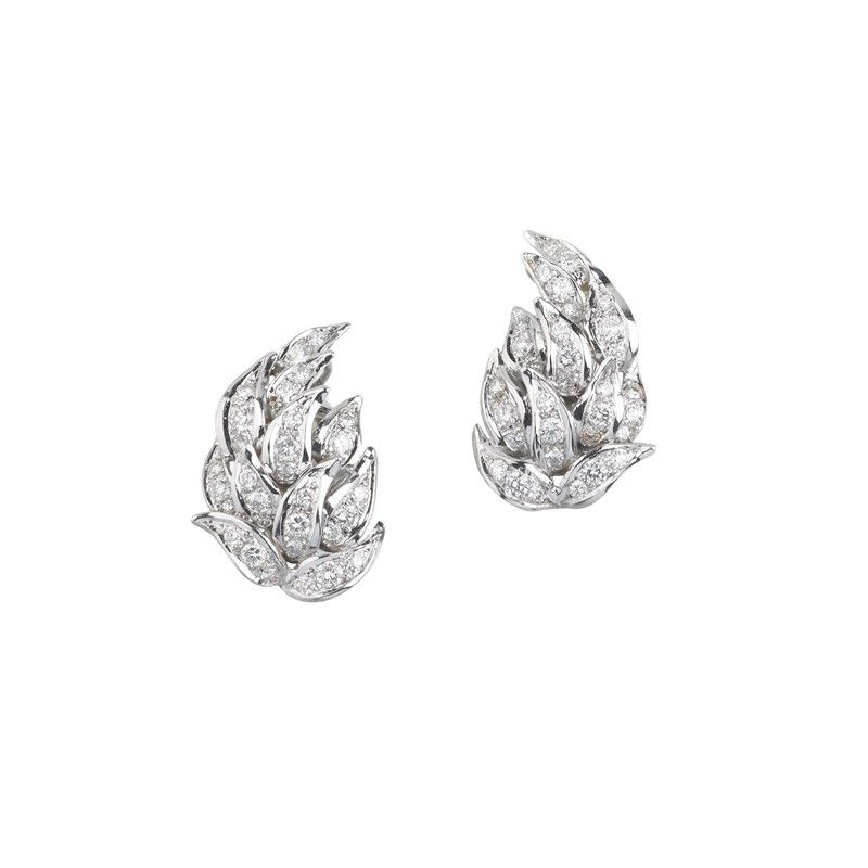 BRANCH-SHAPED DIAMOND EARRINGS IN 18KT WHITE GOLD