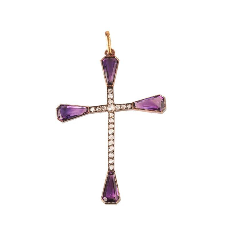 PENDENTE A FORMA DI CROCE CON AMETISTE E DIAMANTI