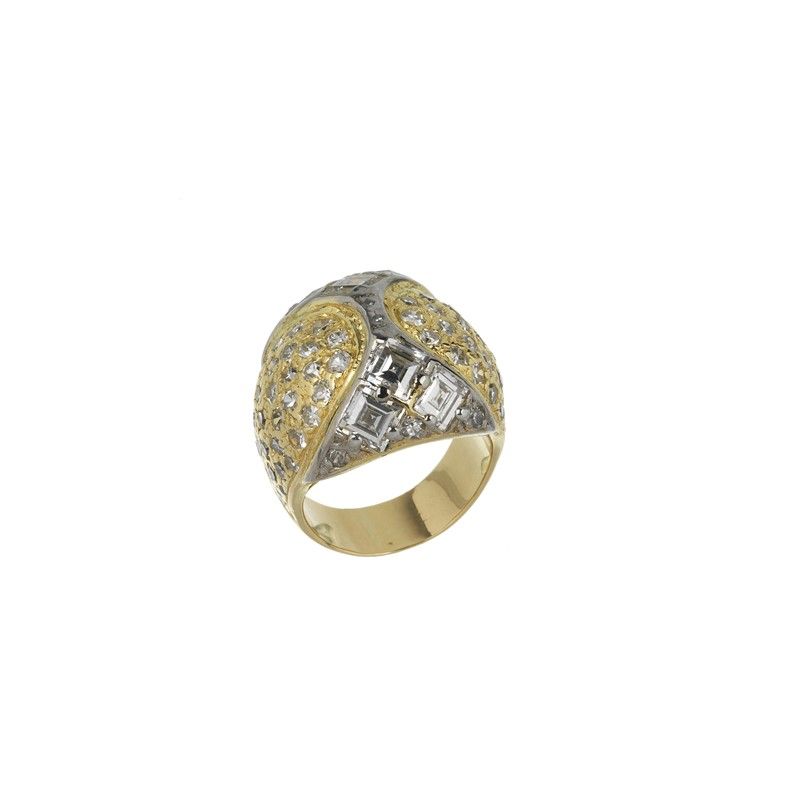 in oro giallo e bianco 18kt, impreziosito da diamanti taglio carré e huit huit per ct 2.20 circa, mis. 47, gr. 9