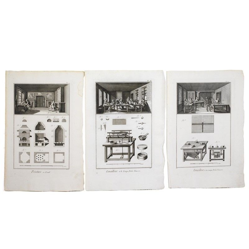 SERIES OF 5 PLATES AND INDEX OF ENCYCLOPÉDIE, OU DICTIONNAIRE RAISONNÉ DES SCIENCES, DES ARTS ET DES MÉTIERS BY DENIS DIDEROT E JEAN LE ROND D'ALEMBERT - EMAILLEUR A LA LAMPE ET PEINTURE EN EMAIL engraving on laid paper, mm 445X290