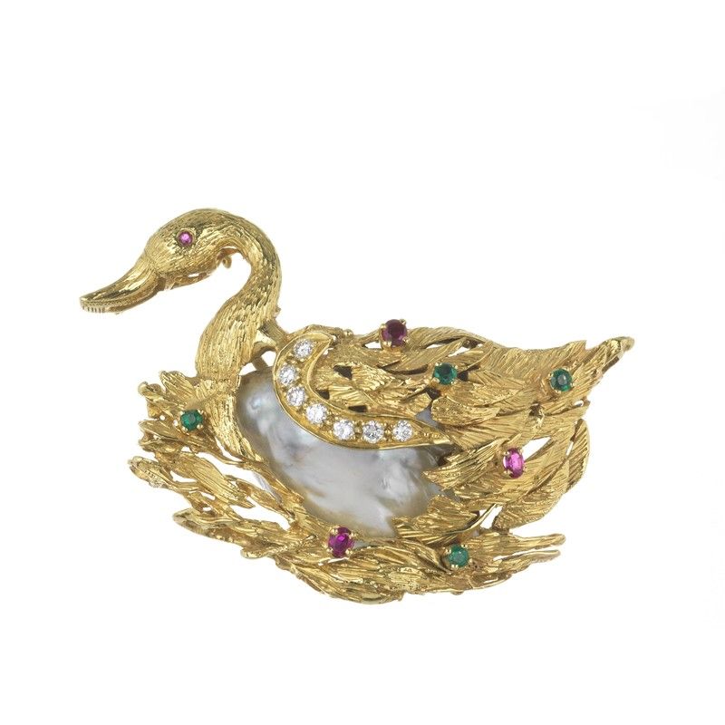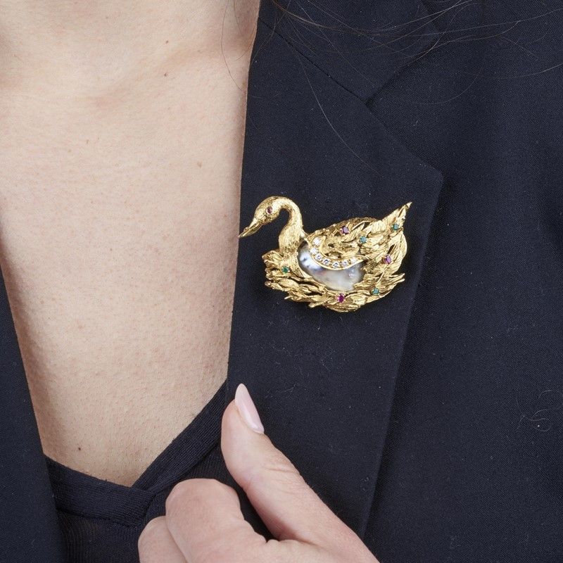 SWAN-SHAPED BROOCH IN YELLOW GOLD