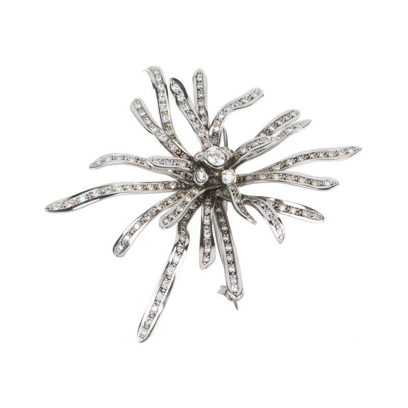 DIAMOND FLORAL BROOCH IN 18KT WHITE GOLD