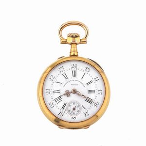 MI CHRONOMETRE PICCOLO OROLOGIO DA TASCA CON CATENA cassa in due parti in oro giallo 18kt, quadrante in smalto [..]