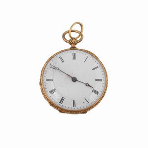 COURBUISIER FRERE PICCOLO OROLOGIO DA TASCA cassa in due parti in oro giallo 18kt, fondello finemente decorato [..]