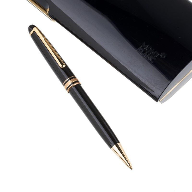 MONTBLANC MEISTERSTUCK PENNA A SFERA fusto in resina di colore nero, dettagli di rifinitura in metallo dorato, cappuccio sormontato dall'emblema a stella bianca, caricamento a cartuccia, lungh. cm 14. Corredata di scatola, controscatola e garanzia. Difetti