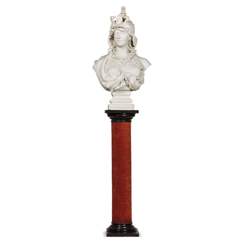 in biscuit, raffigurante Minerva, su colonna non pertinente; cm 88x55x38