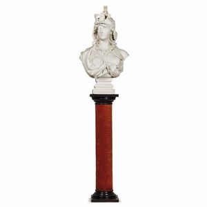 Anonimo, secolo XIX BUSTO DI MINERVA in biscuit, raffigurante Minerva, su colonna non pertinente; cm 88x55x38 [..]