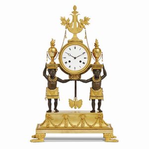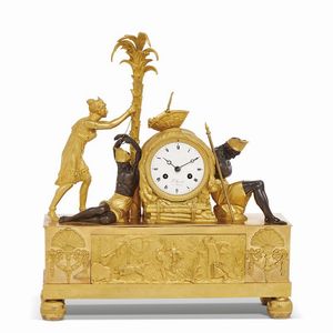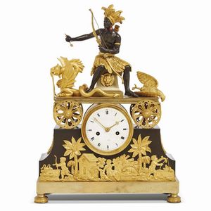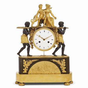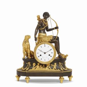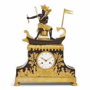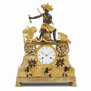 OROLOGIO DA CAMINO, PARIGI, 1800-1810 L’Èlegante des Caraibes in bronzo dorato e patinato con quadrante [..]