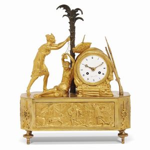 OROLOGIO DA CAMINO, PARIGI, 1802-1810 Atala délivrant Chactas in bronzo dorato e patinato con quadrante [..]