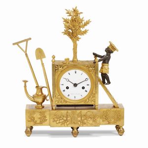 OROLOGIO DA CAMINO, PARIGI, 1805-1815 Le Jardinier amérindien bronzo dorato e patinato con quadrante in [..]