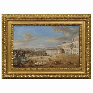 Anonimo del secolo XX VEDUTA DELLA PIAZZA DI MONTECAVALLO olio su tela; cm 52,5x80 Anonymous, 20th century VIEW [..]