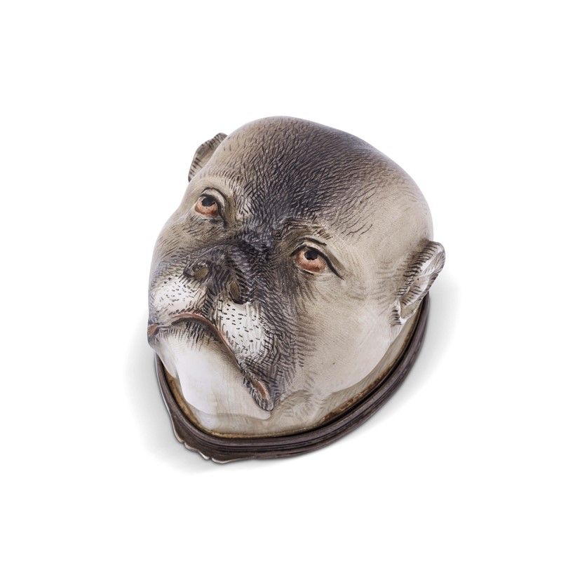 A NORTH EUROPEAN PUG'S HEAD SNUFFBOX, 18TH CENTURY