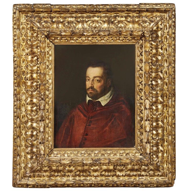 Florentine School, late 16th-early 17th century PORTRAIT OF A GENTLEMAN oil in panel, within an important carved and gilded frame; cm 72,5x56 (painting)