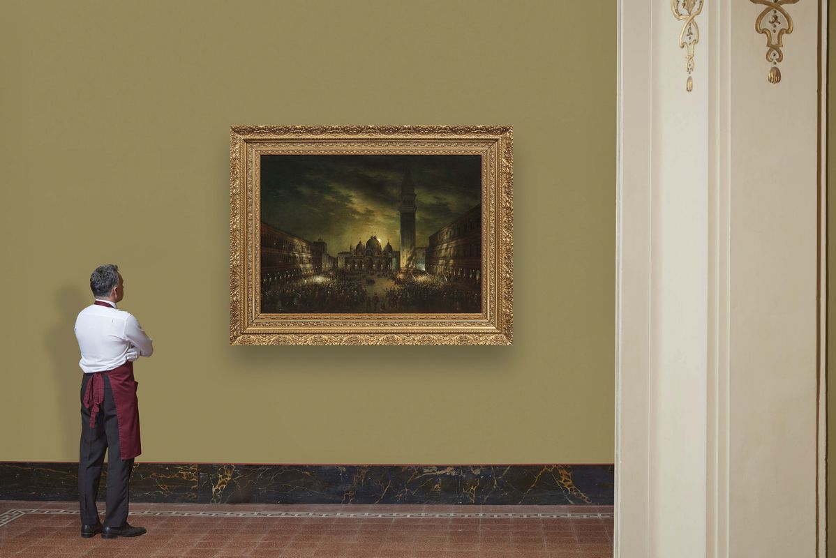 olio su tela, raffiguranti Piazza San Marco e Piazzetta San Marco al chiaro di luna, cm 116x86