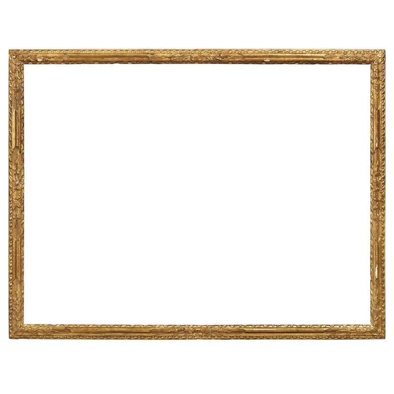 in legno intagliato e dorato, battuta a unghiature si porta su fascia con decori floreali intervallata da riserve e fascia a perlinatura; ingombro cm 160,5x123,5, luce cm 147x111