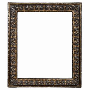 CORNICE, ITALIA CENTRALE, SECOLO XVII in legno intagliato, ebanizzato e dorato, battuta dorata a fogliette di [..]